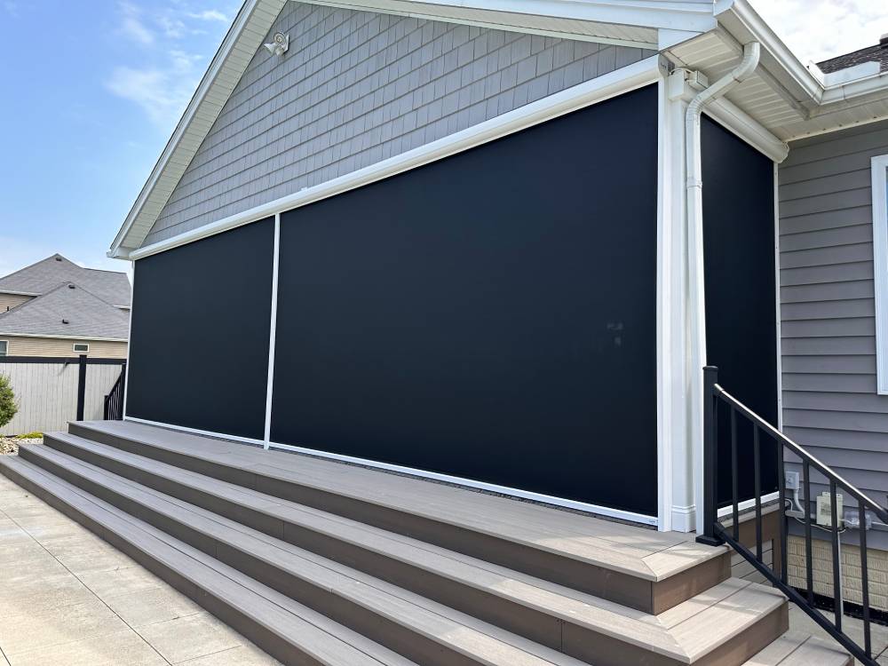 With power retractable screens, you can enjoy a cooler, more comfortable outdoor space while protecting your furniture, flooring, and décor from the damaging effects of UV rays. Our screens not only enhance privacy and block pests but also contribute to lower energy costs by reducing heat in warmer months and trapping warmth on cooler days—all at the touch of a button.